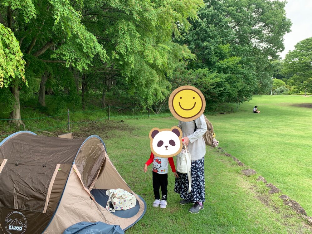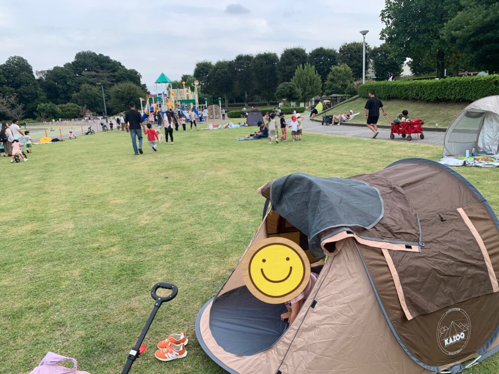 公園の中でささっと子どもの遊び場となるベースが出来上がりました。我が家はお弁当を食べたり、交代で子どもを遊ばせて休むなどして公園での休日をゆっくり過ごしています。