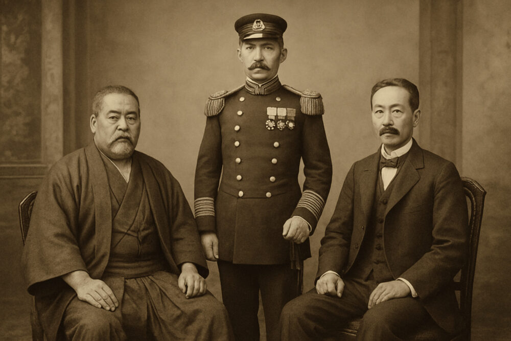 西郷隆盛、大久保利通、東郷平八郎をイメージして作ったAI画像です。人物と実在の写真とは無関係です